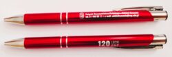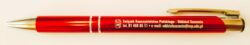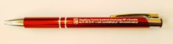 Długopis reklamowy ZNP w kolorze czerwonym z niebieskim wkładem.
